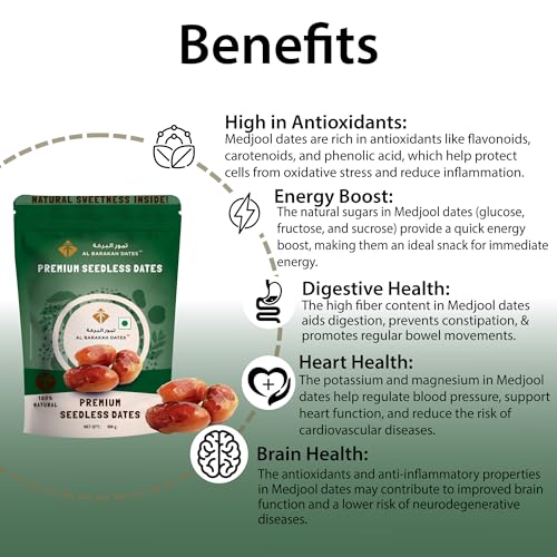 • 100% Natural & Seedless: Enjoy the pure, unadulterated taste of high-quality dates, carefully selected and seedless for your convenience.
