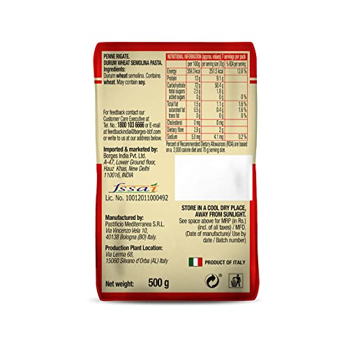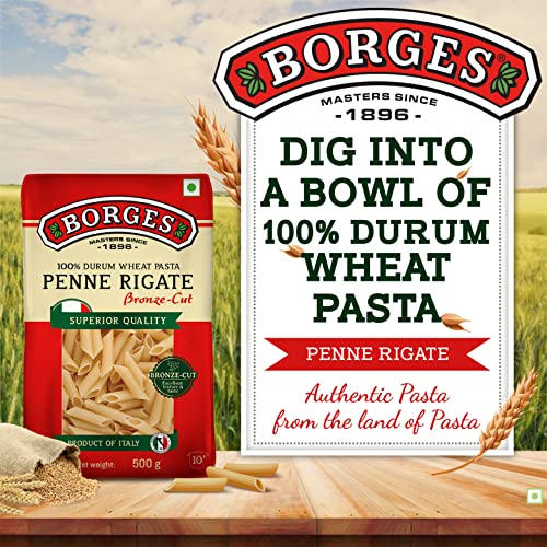 Borges Penne Pasta – 500 gm| 100% Durum Wheat | Imported from Italy | High in Protein |No Preservative