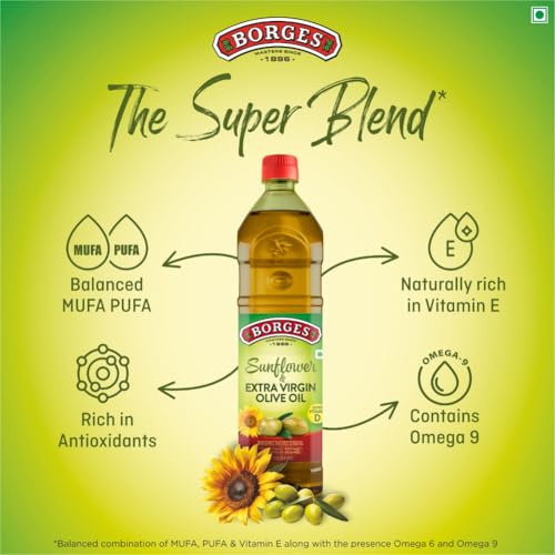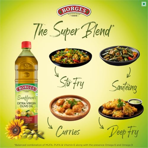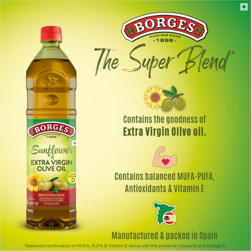 Borges Super blend of Extra virgin Olive oil & Sunflower oil – 1 ltr | Ideal for Deep frying, Shallow Frying, all types of cuisines