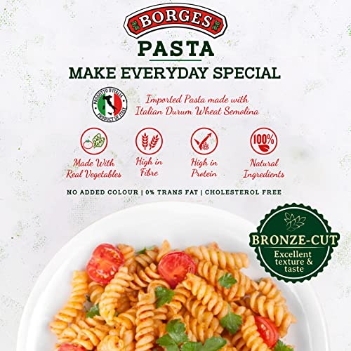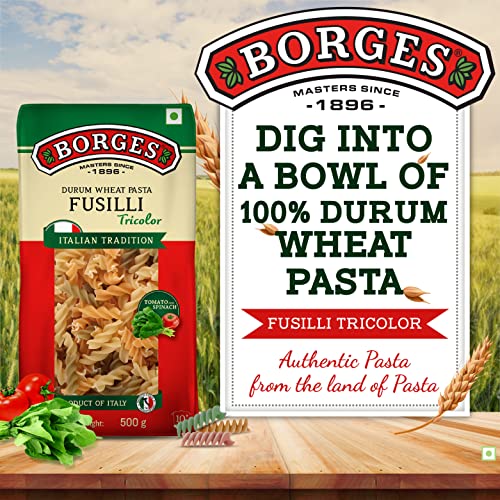 • Product 1: ITALIAN DURUM WHEAT SEMOLINA: Borges Tricolor Fusilli Durum Wheat Pasta is rich in fiber and protein.