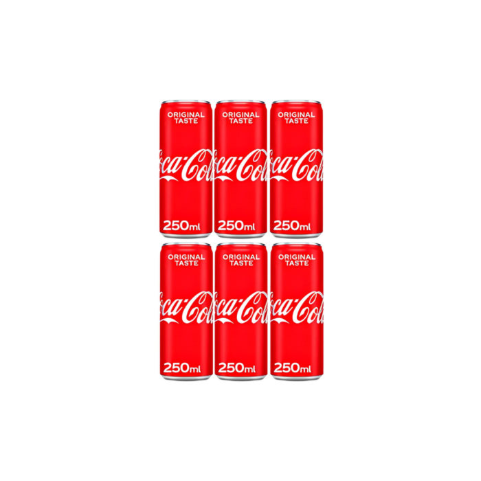 The iconic flavor of Coca-Cola Original with this convenient pack of six 250ML imported cans. Perfect for any occasion, these beverages offer the refreshing and bubbly taste that has delighted millions around the world for decades.