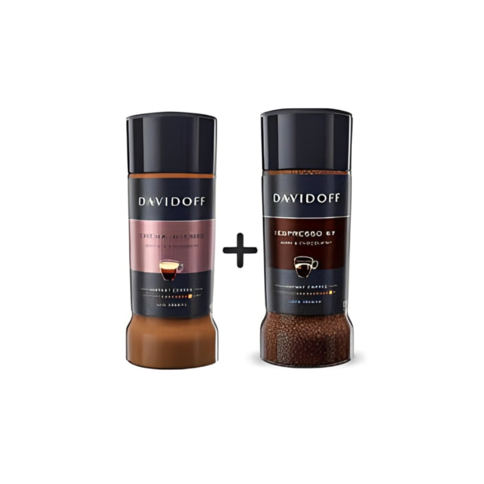 Enjoy the perfect blend of rich and smooth with the Davidoff Espresso 57 Intense Instant Ground Coffee and Davidoff Crema Intense Instant Coffee combo pack. This set includes a 100g jar of Davidoff Espresso 57 Intense, known for its bold, dark espresso flavor with a robust intense profile. The 100g jar of Davidoff Crema Intense adds a touch of creamy smoothness and a rich aroma to your coffee routine. Experience the best of both worlds with this premium coffee combo pack, ideal for those who love both intense espresso and creamy instant coffee.