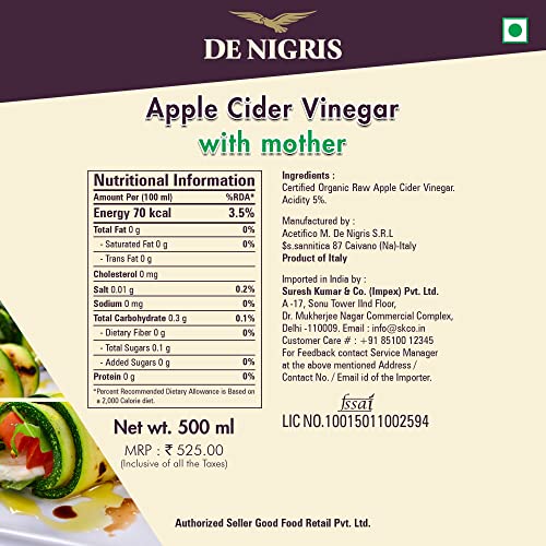 De Nigris Organic Apple Cider Vinegar, 500ml