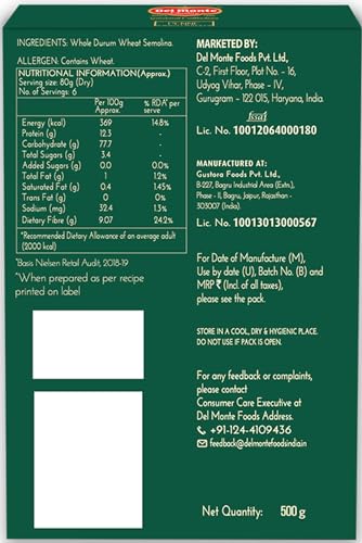 • Del Monte whole wheat range of pasta is crafted using the finest quality whole wheat available, guaranteeing you an experience that is truly world class
