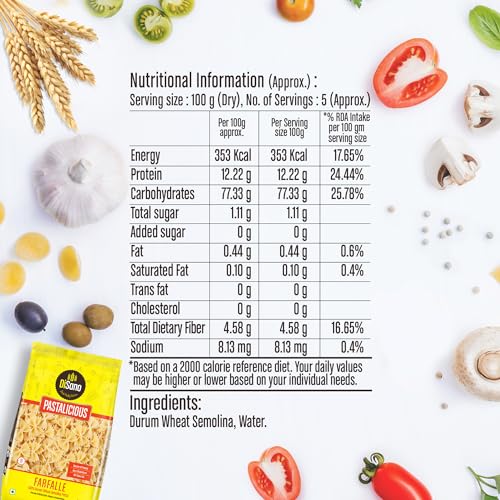 DISANO Pastalicious 100% Durum Wheat Farfalle Pasta, 500 Gram