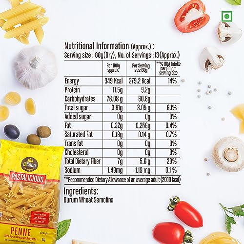 Be the first to review “DiSano Penne Pasta, 1Kg, 100% Durum Wheat, No Maida, High Protein & Fiber”