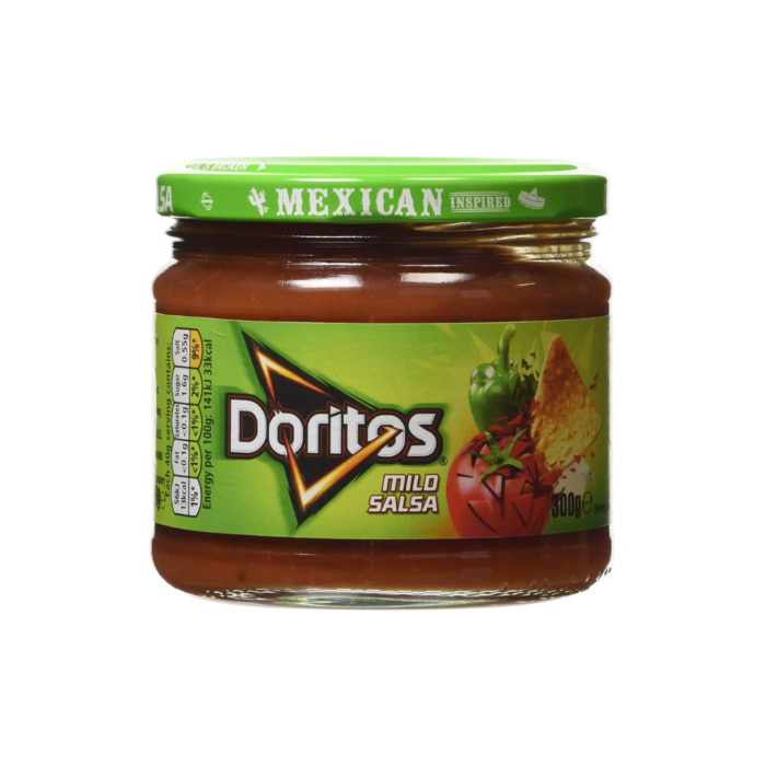 Chunky salsa can help deepen the flavors of any dish without overpowering them with heat Load up your Doritos tortilla chips with Mild Salsa Dip to unleash the full Doritos taste experience Doritos tangy Mild Salsa dip makes your snacking experience even bolder. Chunky salsa can help deepen the flavors of any dish without overpowering them with heat Load up your Doritos tortilla chips with Mild Salsa Dip to unleash the full Doritos taste experience Doritos tangy Mild Salsa dip makes your snacking experience even bolder. Package Information : Tin Speciality :No Artificial Flavours, Vegetarian, No Artificial Colours. Brand :Doritos Flavour : Mild Salsa Form : Pasta Material Feature :Vegetarian Package Weight :0.54 Kilograms Load up your Doritos tortilla chips with Mild Salsa Dip to unleash the full Doritos taste experience Chunky salsa can help deepen the flavors of any dish without overpowering them with heat Doritos tangy Mild Salsa dip makes your snacking experience even bolder This is a Vegetarian product.