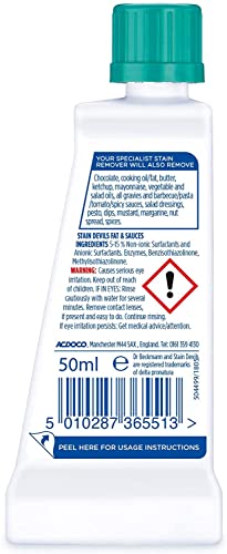 Dr. Beckmann Dr Beckmann Stain Devils Romves Cooking Oil Fat – 50 Ml Stain Devils Fat & Sauces | Specialist Stain Remover Combats Various Greasy Stains, Liquid| 50 Ml