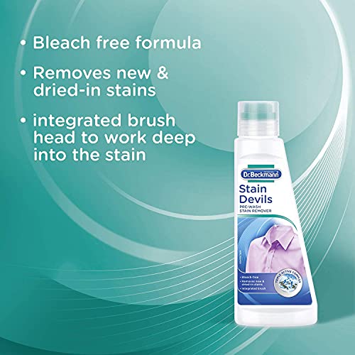 Dr Beckmann Pre Wash Stain Remover with Brush | Works 1st Time Against Tough Stains |Liquid| For all Colours & Textiles | 250ml