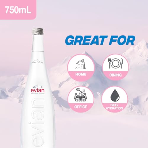 • Evian still natural mineral water glass bottle 750ml