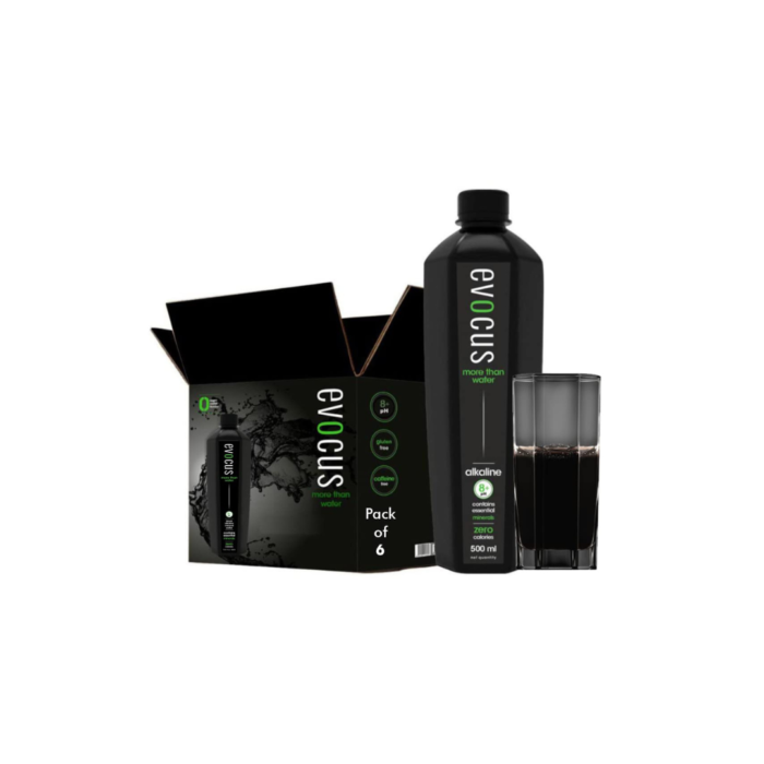 Evocus Black Alkaline Drink Infused with Essential Minerals 500ml (Pack of 6) is a unique and refreshing beverage designed to hydrate and energize your body. This black alkaline water is infused with essential minerals that support overall health, helping to balance your body’s pH and promote hydration.