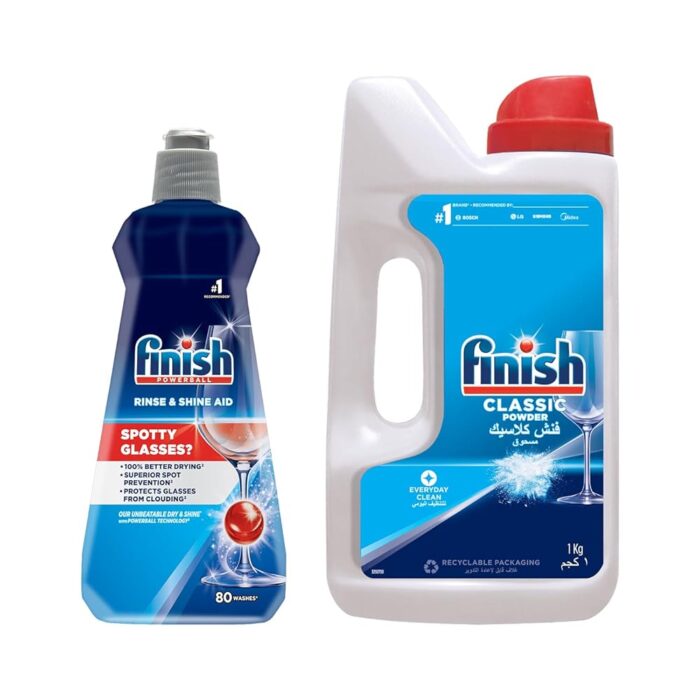 Be the first to review “Finish Dishwasher Rinse Aid Liquid, Shine & Dry – 400ml and Classic Dishwasher Detergent Powder- 1Kg | World’s #1 Recommended Dishwashing Brand”