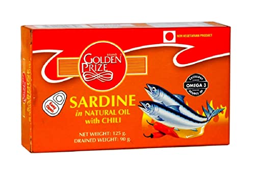 Golden Prize Canned Sardine in Natural Oil with Chili, 125g (Pack of 2)