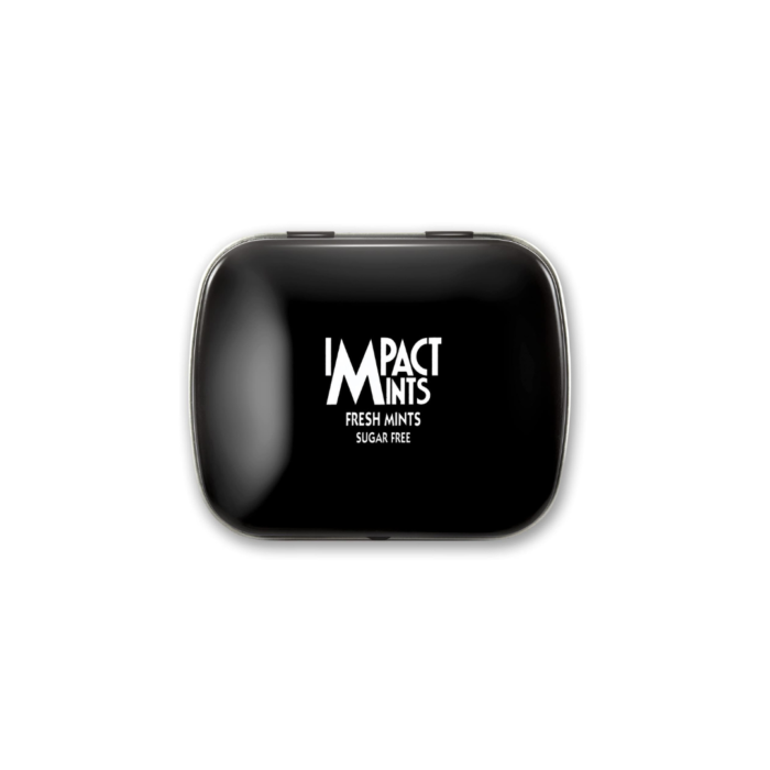 Impact Sugar Free Fresh Mints Superbly flavoured fresh mint for a super fresh and ever pleasant breath. Available in 7 different fruity and minty flavours. No food colour. 70 Mints per tin. Impact mints fresh mints sugar free For a super fresh and an ever pleasant breath. Available in several different fruity & fresh mint flavours. No food colour. Mints made in Germany. This product is 100% vegetarian. Ingredients: Sweetener (Sorbitol), flavours, aspartame, anticaking agent (magnesium stearate), vegetable oil, contains artificial sweetening agent, acesulfame K.