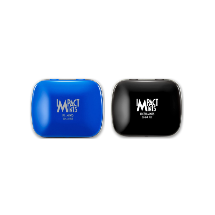 Impact Mints Ice Mint + Impact Sugar Free Fresh Mints combo For a super fresh and an ever pleasant breath. Available in several different fruity & minty flavours. No food colour. Mints made in Germany. This product is 100% vegetarian. Ingredients: Sweetener (Sorbitol), flavours, aspartame, anticaking agent (magnesium stearate), vegetable oil, contains artificial sweetening agent, acesulfame K