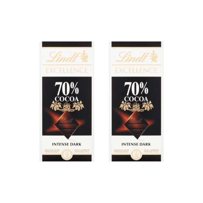 Lindt Excellence Intense Dark 70% Bar 100g (Pack of 2) – Premium Dark Chocolate