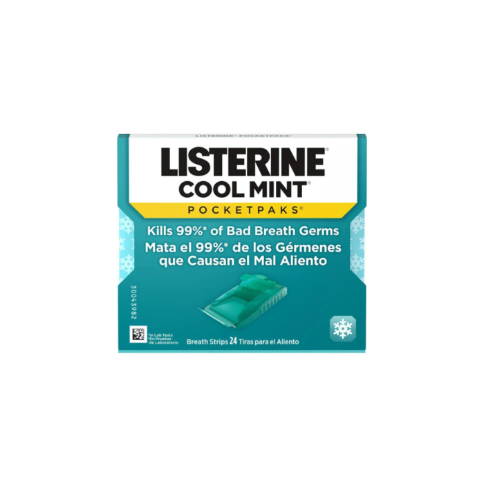 Listerine Cool Mint Breath Strips are a quick and effective way to freshen your breath anytime, anywhere. These pocket packs contain 24 mint breath strips that dissolve instantly in your mouth, providing a refreshing cool mint flavor and leaving your mouth feeling clean and revitalized.