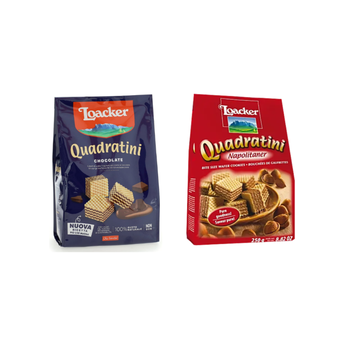 Indulge in the irresistible combination of Loacker Quadratini Chocolate Wafers 250g and Loacker Quadratini Napolitaner Wafers 250g with this delicious combo pack. These premium chocolate wafer snacks are perfect for those who appreciate high-quality wafers with rich flavor and a satisfying crunch. Whether you’re enjoying a snack with your coffee or gifting it to a friend, this combo pack offers the best of both worlds.