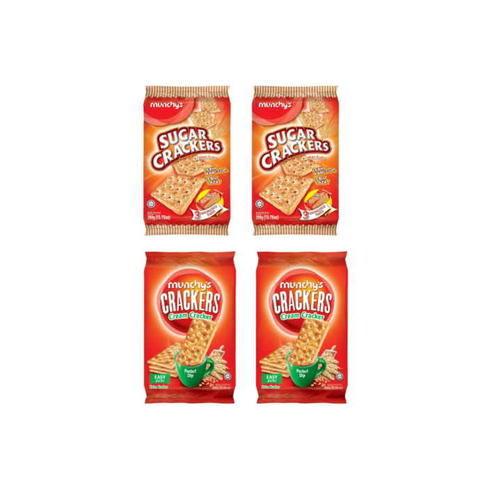 Each pack is perfectly portioned, with Munchy’s cream crackers offering a light, crispy texture and a slightly salty flavor, while the Munchy’s sugar crackers provide a sweet, crunchy treat. Together, they make the ideal pairing for both savory and sweet snack cravings.