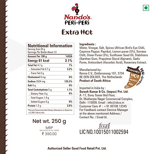 • Nando’s Authentic Peri Peri Sauce. Produced and Packed in Netherands.