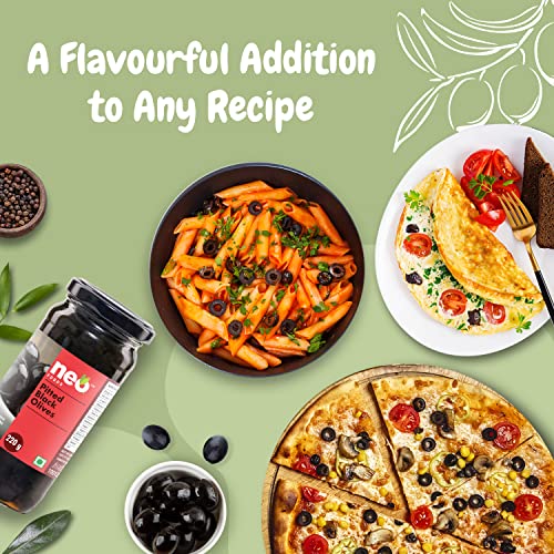• Diet-Friendly, A Nutritious Addition: Neo Foods Pitted Black Olives are a multipurpose ingredient, as they can be used to add a flavour to a range of dishes like pizzas, pasta, sandwiches, wraps, and many more. The olives are also used in various diet plans like keto, Mediterranean, paleo, etc., thus go well with salads and are a healthy snacking option.