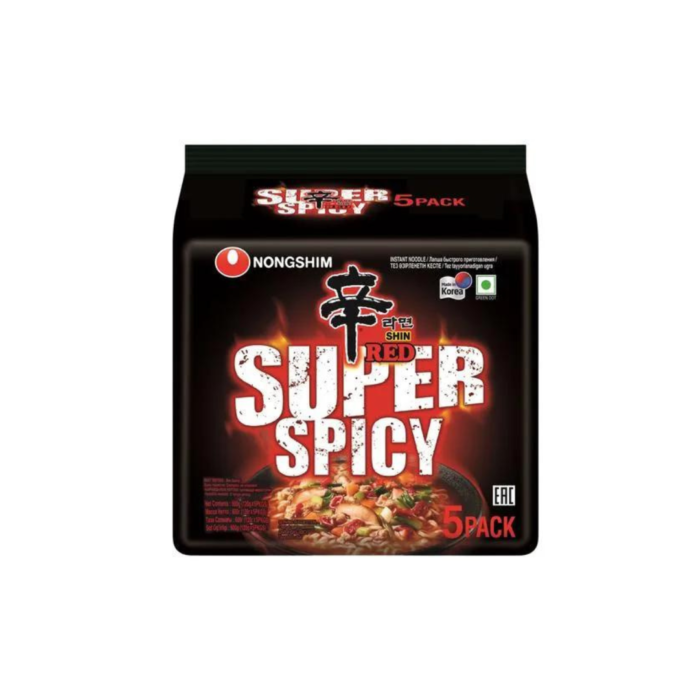 Nongshim Red Super Spicy Instant Noodles The 120g pack of five means you always have a spicy fix on hand, perfect for those who like their noodles hot. Buy | Try the STEAMY HOT Nongshim Shin Red Super Spicy Noodles NOW!