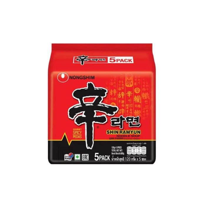 Nongshim Shin Ramyun Korean Style Spicy Noodle 600g (pack of 5)