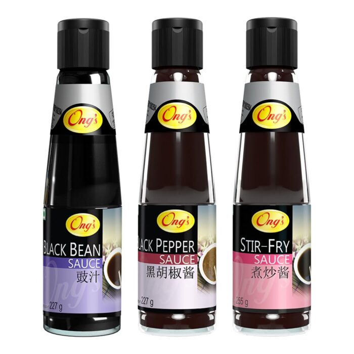 ONG’S Black Bean Sauce 227 grams | Black Pepper Sauce 227 grams | Stir Fry Sauce 255 grams | combo pack of 3 | product of Singapore |