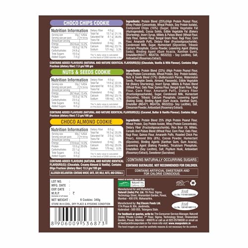 RiteBite Max Protein Assorted Cookies with 10g Protein, 7 Grain Breakfast Cookies, 55g (Pack of 6)