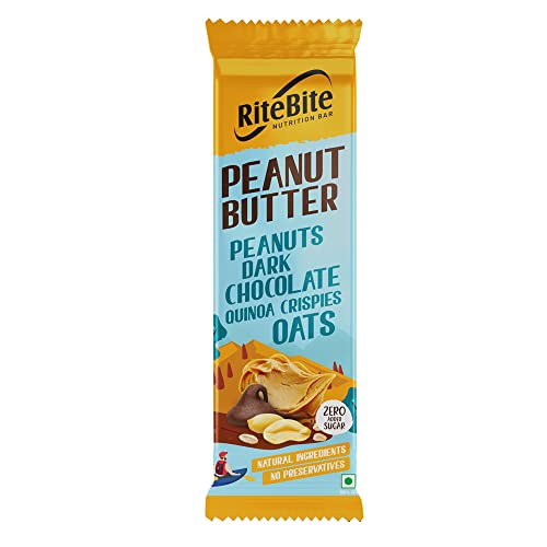 • NUTRITION AND LOT MORE: Enjoy the rewarding taste of RiteBite Peanut Butter Energy Bar which has the goodness of peanut butter that serves as a source of protein blended of dark chocolate that serves as a mood elevator and aids stress management. We also have Oats that delivers Fibre and quinoa provides sustained energy with Low GI. A product with clean and natural ingredients and no preservatives.