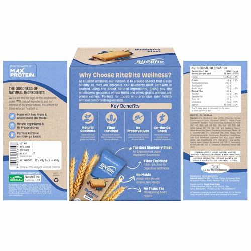 Be the first to review “RiteBite Wellness Snack Bar Blueberry Blast | Fruit Filled Fiber Bar, Natural Ingredients, Rich in Fiber, No Preservatives | 40g (Pack of 12)”
