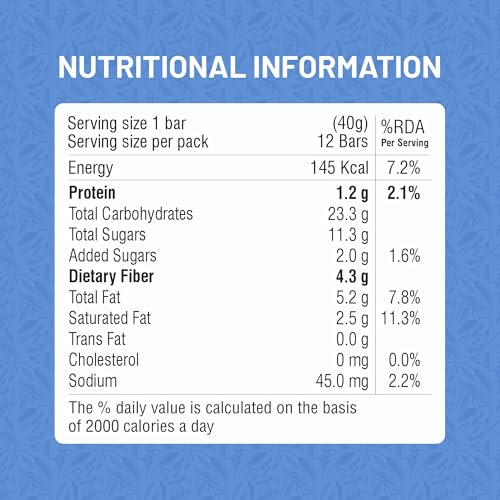 • Enjoy a Deliciously Soft Texture: The Blueberry Blast bar offers a tender and soft bite, making it a perfect treat for those who enjoy a gentle and satisfying chew. It’s an ideal option for those who prefer a softer snack without compromising on flavour or nutrition.