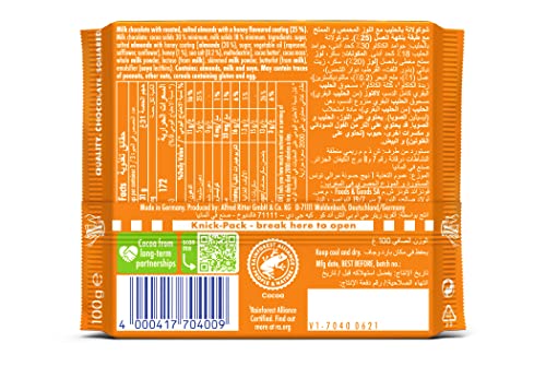 Ritter Sport Honey Salt Almonds 100g, Ritter Sport Chocolates Nut Selection, product of Germany, milk chocolate with honey, sea-salt, and almonds | Nutritious and Nutty Crunch
