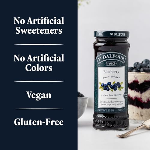 St Dalfour Blueberry Fruit Spread 284 g | No Added Sugar | 100% from Fruit | No Added Preservatives, Colours, Flavors or Sweeteners | No Corn Syrup | Traditional French Recipe