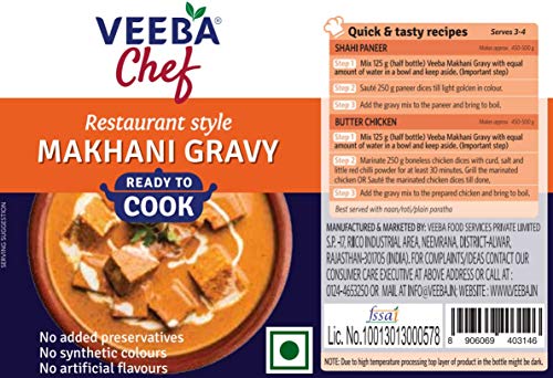 • Arguably India’s most loved gravy, you can now make choicest of dishes using Veeba Chef Makhani gravy, from world favourite Dal makhani to Shahi paneer to murg makhani.