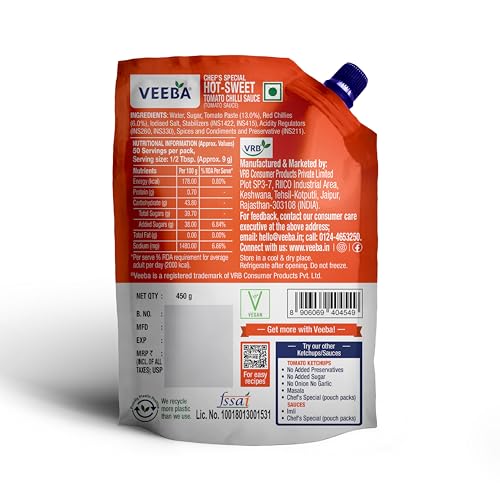 • Veeba Chef’s Special Hot-Sweet Tomato Chilli Sauce has the distinctive taste of tomatoes and chillies, blended with other spices